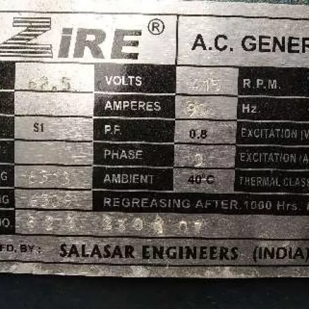 Tata Cummins 62.5 kva generator, open, volts 415, rpm 1500, Hz 50, pf 0.8, amps 85, phess 3, electric start, water cooling,